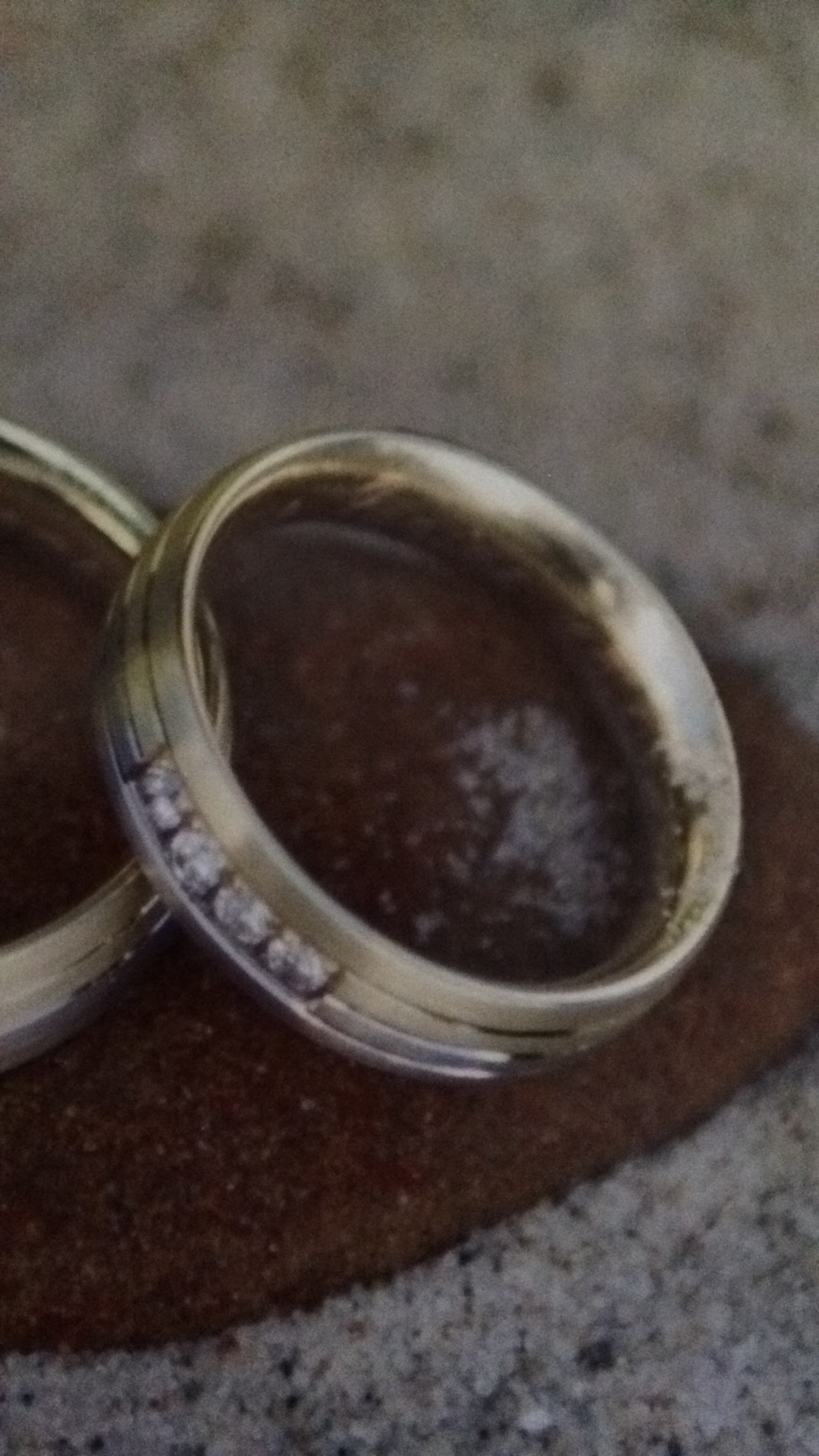 Wir suchen einen gelbgolden und weißgoldenen Ehering mit 4 Steinchen in der Mitte. Die Gravur lautet: Andreas & Janine 15.06.2015 und ging am 10.06.2017 verloren.