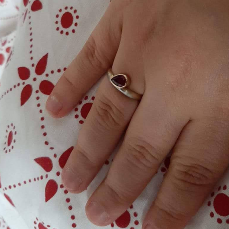 Sandra sucht diesen Ring mit tropfenfrömigem Stein, der bereits 2019 verloren ging. Graviert ist der Name Heike (Manfred?) + Datum.
